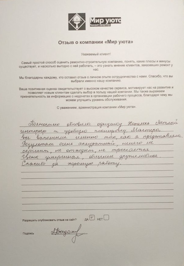 Мы самостоятельно получаем разрешения на работы, требующие согласования с управляющей компанией или государственными органами, включая снос перегородок, возведение новых простенков, монтаж радиаторов отопления, установку теплого пола или проведение электрики.