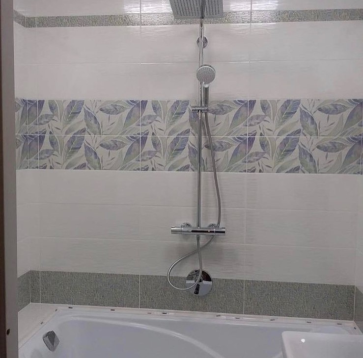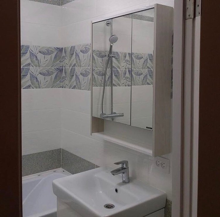 Наша компания выполнила бюджетный ремонт ванной комнаты в квартире на улице Бобруйская в трендовых серых цветах. В ходе проведения работ мастера заменили отделку, установили подвесной потолок, провели точечное освещение, смонтировали ванну с удобными поручнями, подвесной умывальник с тумбой и квадратной мойкой, смеситель рычажного типа, душевой шланг и навесной шкаф с зеркальными фасадами. Нарядности интерьеру придает декоративное панно с цветочным принтом.