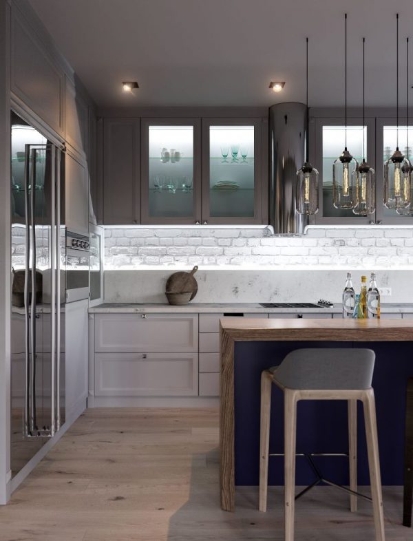 Акцентирующие нотки: открытое пространство без привычных межкомнатных перегородок, дизайнерские люстры, утонченные светильники и панорамные окна. Во всех помещениях установлена мебель, на кухне – кухонный гарнитур с обеденным столом, в гостиной смонтирован плазменный телевизор, а в санузле размещена респектабельная сантехника (многофункциональная душевая кабина, унитаз, биде, умывальник).