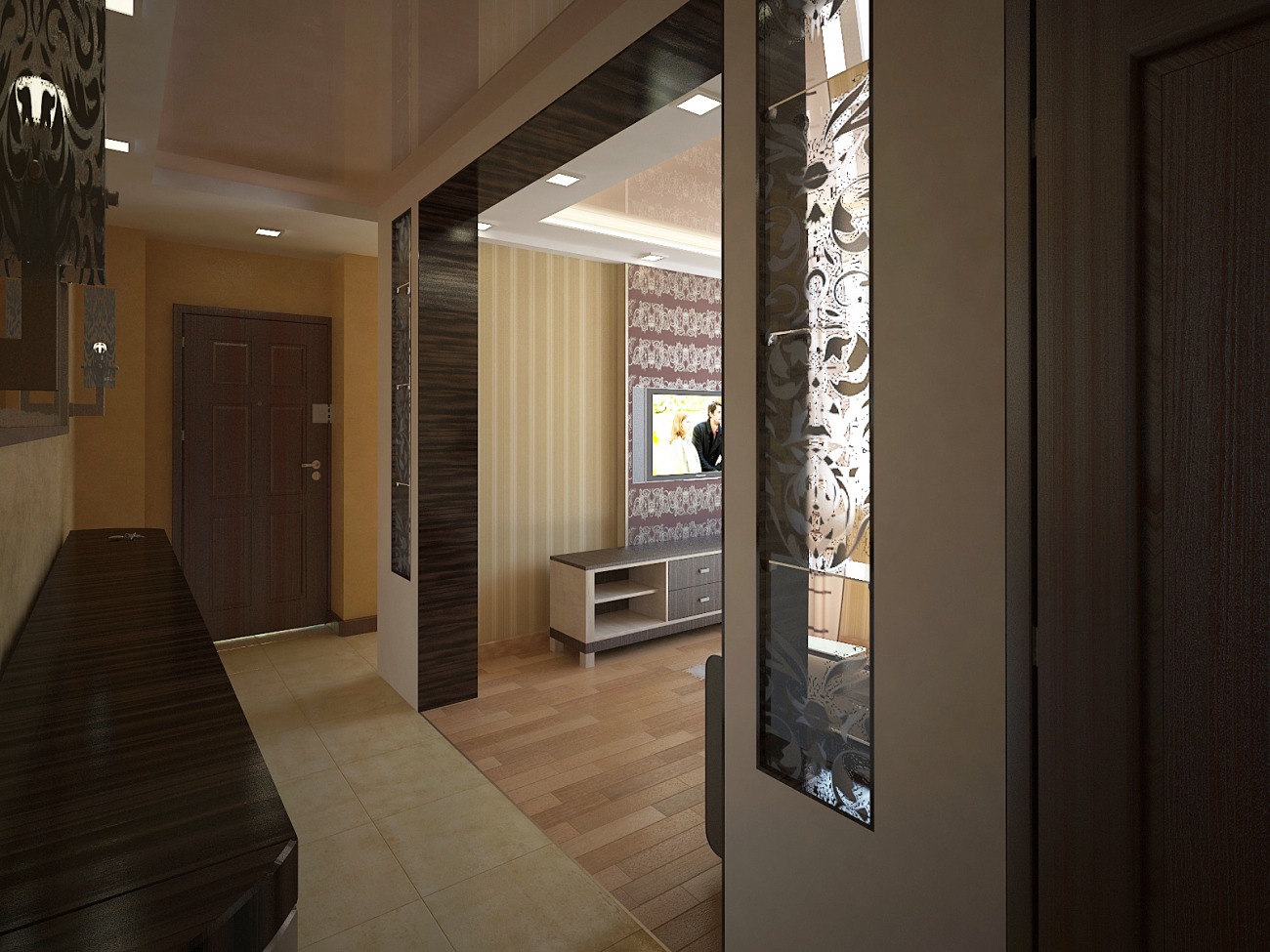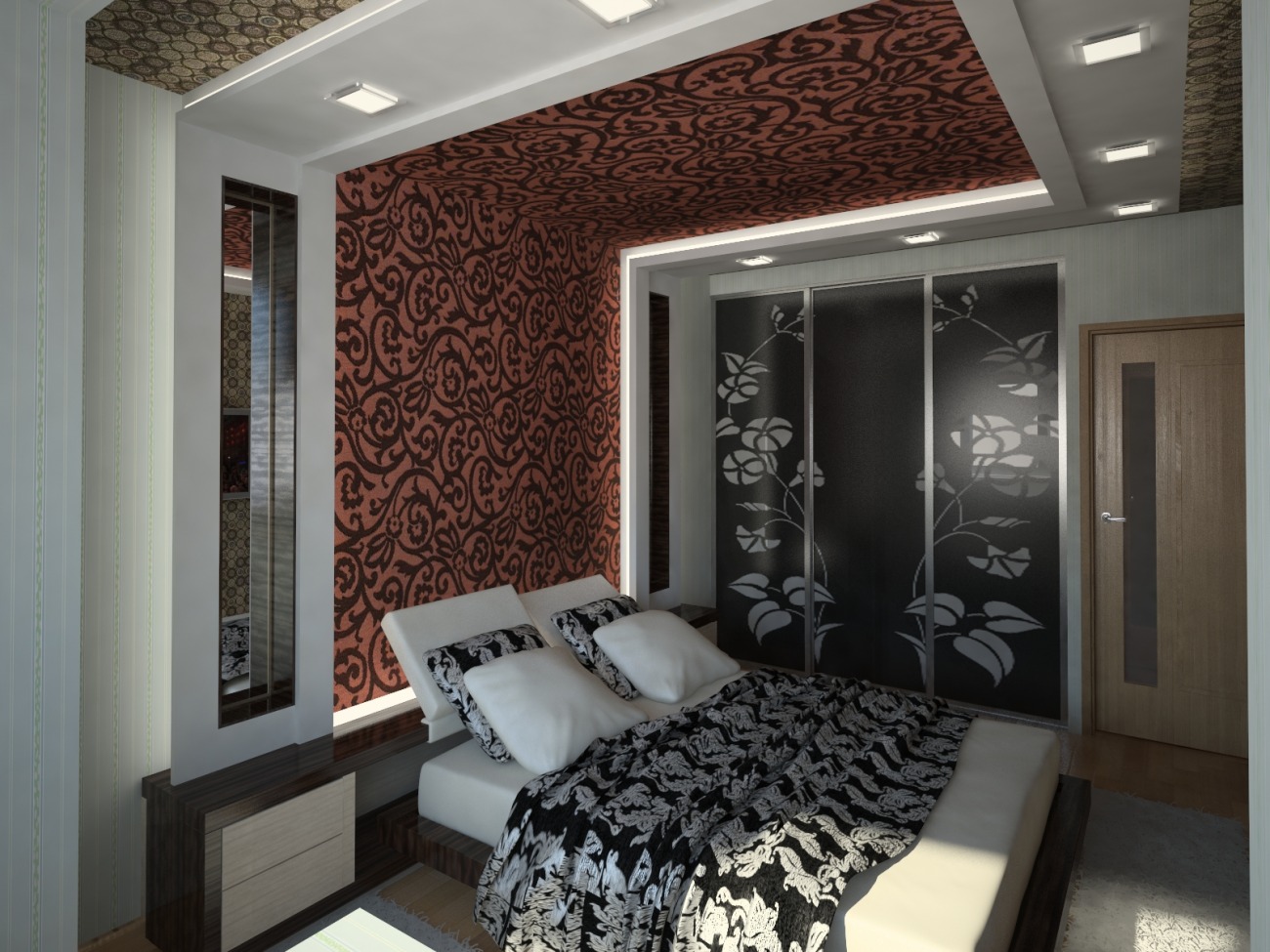 В ходе выполнения евроремонта трехкомнатной квартиры на улице Кастанаевская по дизайнерскому проекту нам удалось оформить все помещения в эксклюзивном дворцовом стиле. Для визуального расширения пространства мы решили оставить проем между прихожей и гостиной, а также оформить комнату в светло-бежевых тонах. При отделке спальни мастера использовали обои с оригинальным орнаментом, установили подвесной потолок и смонтировали шкаф-купе. Комната для девушки оформлена в розовых тонах. Изюминка интерьера – декоративное панно с изображением силуэта феи. Стены в санузле облицованы белым и ярко красным кафелем с глянцевой поверхностью. Над угловой ванной устроен подвесной потолок с точечными светильниками. Также в санузле установлены унитаз, стиральная машина, габаритный шкаф для хранения банных принадлежностей и рукомойник стильного черного цвета.