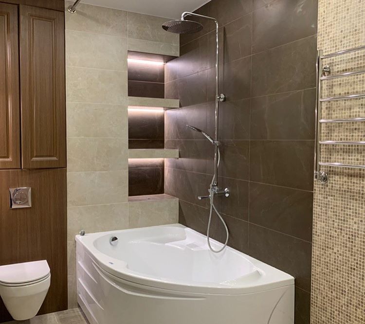 В ходе выполнения капитального ремонта двухкомнатной квартиры на улице Донской мастера полностью обновили поверхности, заменили металлопластиковые окна, застеклили балкон и смонтировали новую электропроводку. Для оформления стен спальни мы выбрали стильные обои с рельефным рисунком, а для гостиной – водоэмульсионную краску кремового и насыщенного серого цветов. На пол мастера уложили ламинат, а потолки выровняли и покрасили в белый. В совмещенном санузле сантехники установили угловую ванну, подвесной унитаз, душ модели «тропический ливень» и полотенцесушитель. Поверхности санузла облицевали бежевой и шоколадной кафельной плиткой.