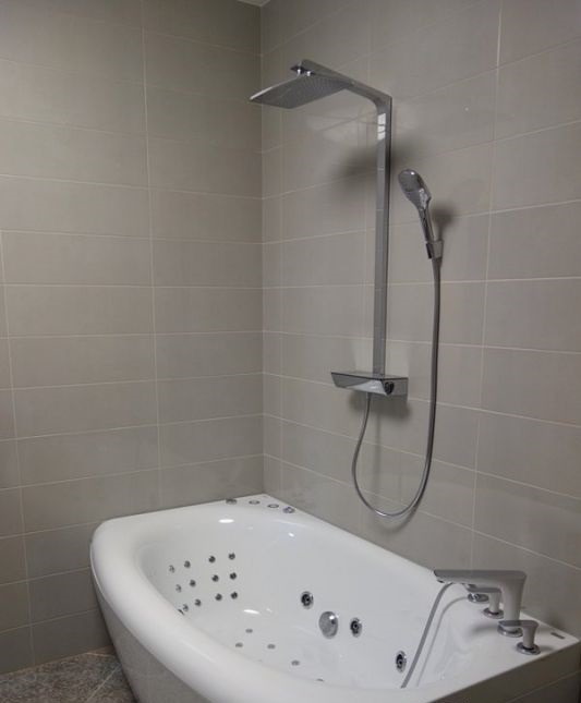 Мастера выполнили капитальный ремонт двухкомнатной квартиры на Звездном бульваре по разработанному дизайнером нашей компании проекту. Для отделки стен использовалась акриловая краска белого и бежевого цвета, а также светло-серые керамические плитки и мозаика. Санузел оформлен в спокойных тонах с ярким акцентом – желтым полотенцесушителем. В помещении установлена ванна с функцией джакузи, душевой шланг, подвесной унитаз и умывальник. На кухне смонтирован кухонный гарнитур. В спальне и детской установлены панорамные окна. Жемчужины интерьера – дизайнерские люстры и декоративные принты.