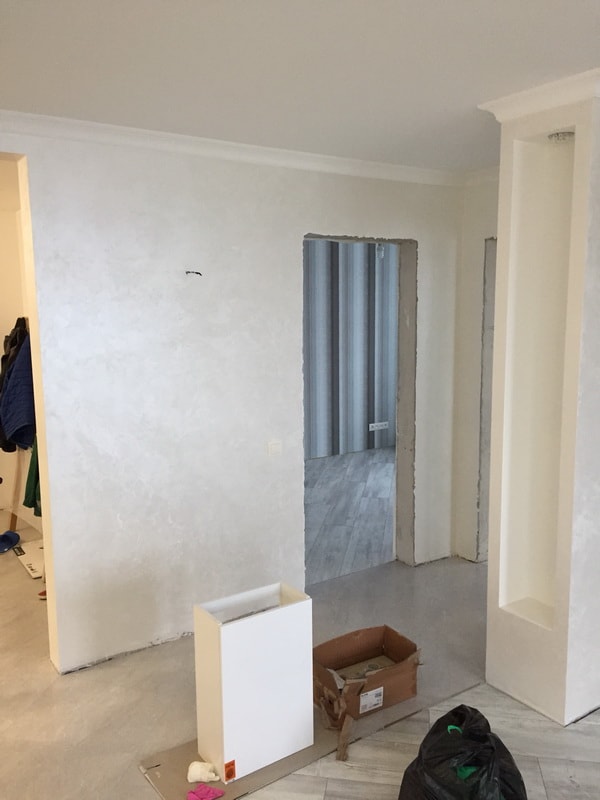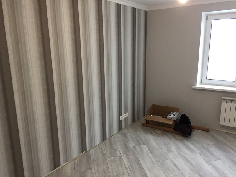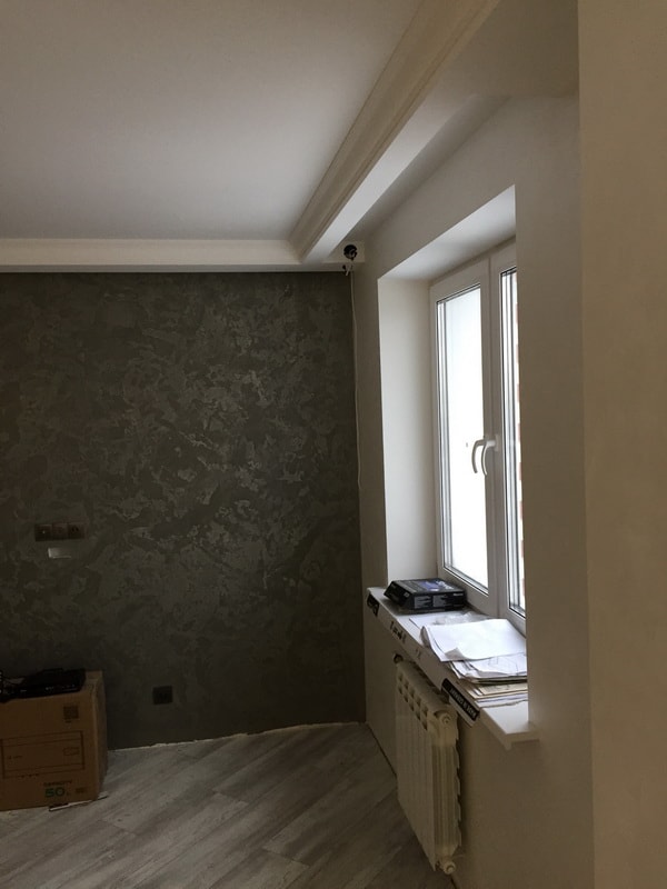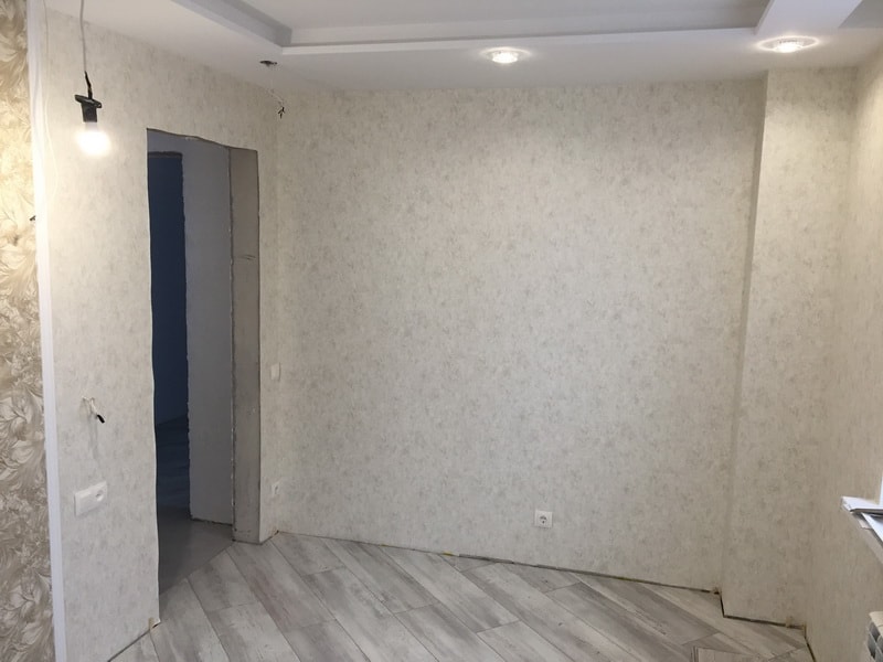 Мы выполнили капитальный ремонт двухкомнатной квартиры в новостройке по адресу Шмитовский проезд. Дизайнер спланировал пространство с учетом пожеланий заказчика и строительных норм, а мастера воплотили идею в жизнь. В результате были возведены межкомнатные перегородки, оформлен балкон, установлены подвесные потолки во всех помещениях и постелено напольное покрытие. Для отделки стен мы выбрали обои с объемным рисунком и стойкую водоэмульсионную краску спокойных оттенков. Поверхности в ванной комнате и санузле мы облицевали серым кафелем. Также мастера уложили фартук на кухне, провели коммуникации и установили сантехнику: ванну, унитаз и полотенцесушитель.