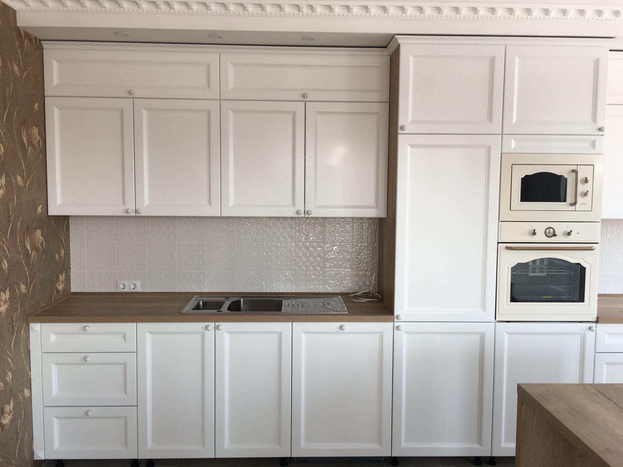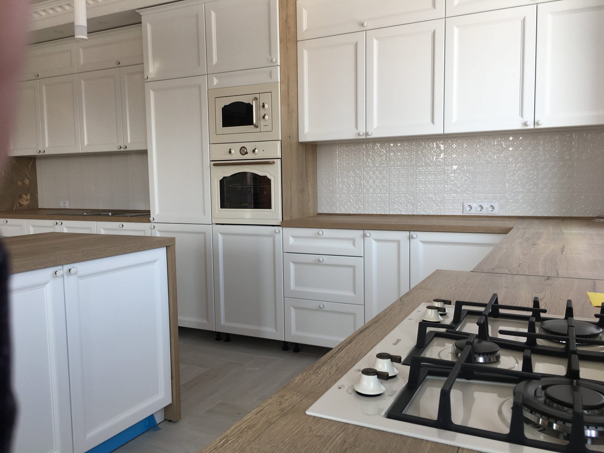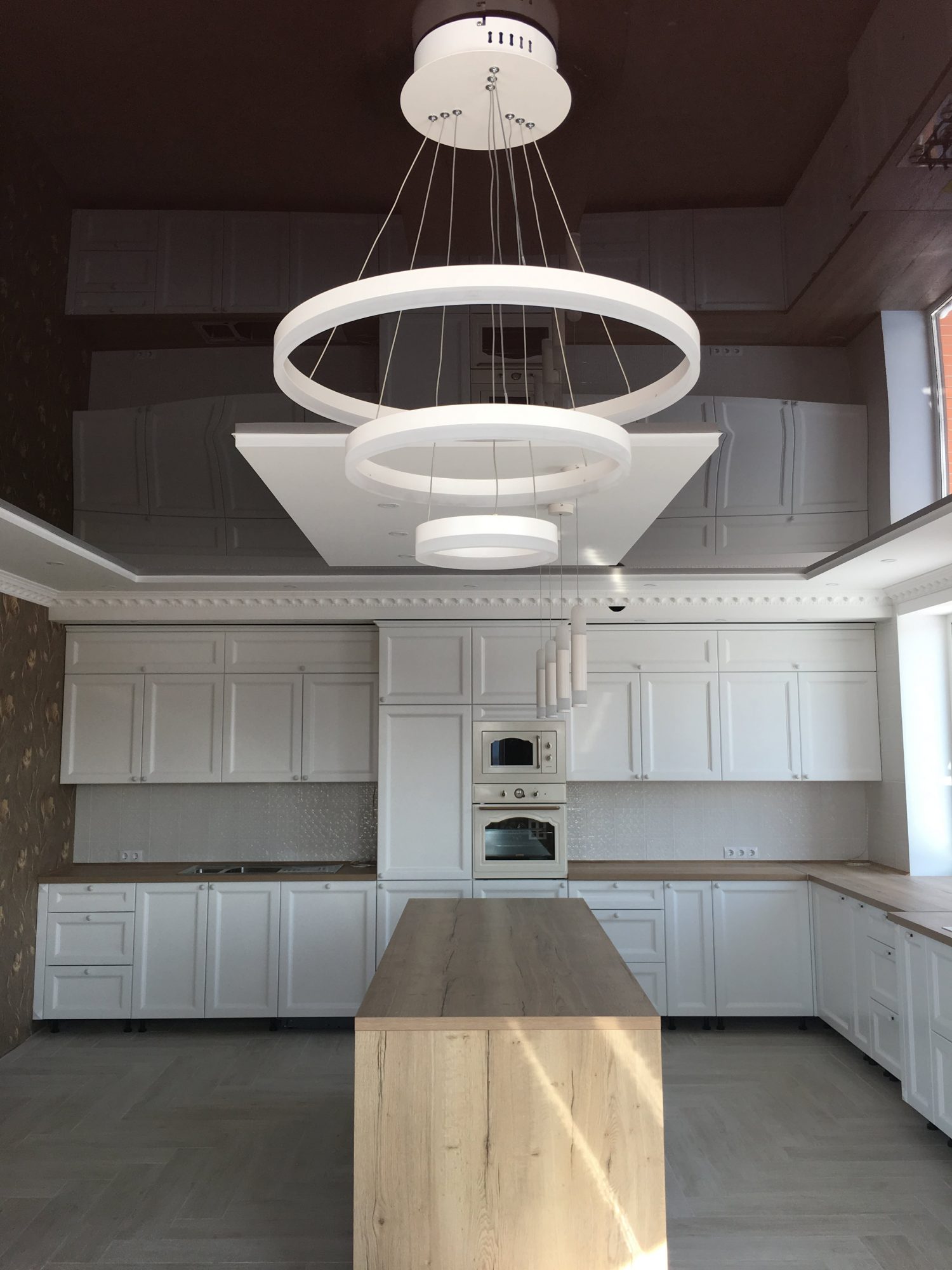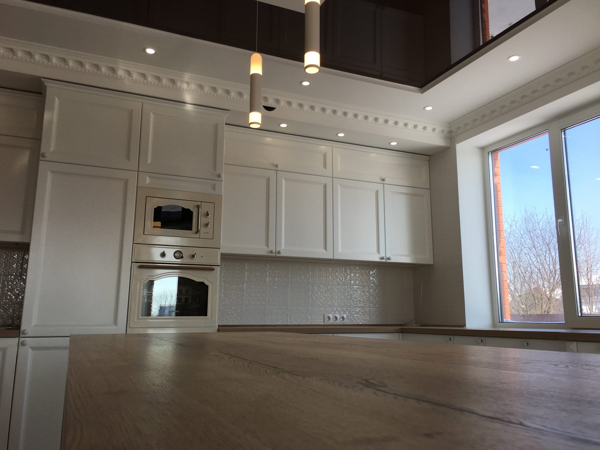 Мы выполнили ремонт таунхауса площадью 240 м² с нестандартной планировкой помещений, расположенного на улице Беговой. Изюминки интерьера – обилие света, дизайнерские люстры, темные натяжные потолки, резко контрастирующие со светлым напольным покрытием и белоснежными фасадами кухонной мебели.Помещения оформлены в неоклассическом стиле с применением отделочных материалов с цветочными принтами, с имитацией кирпичной кладки и декором «под старину».