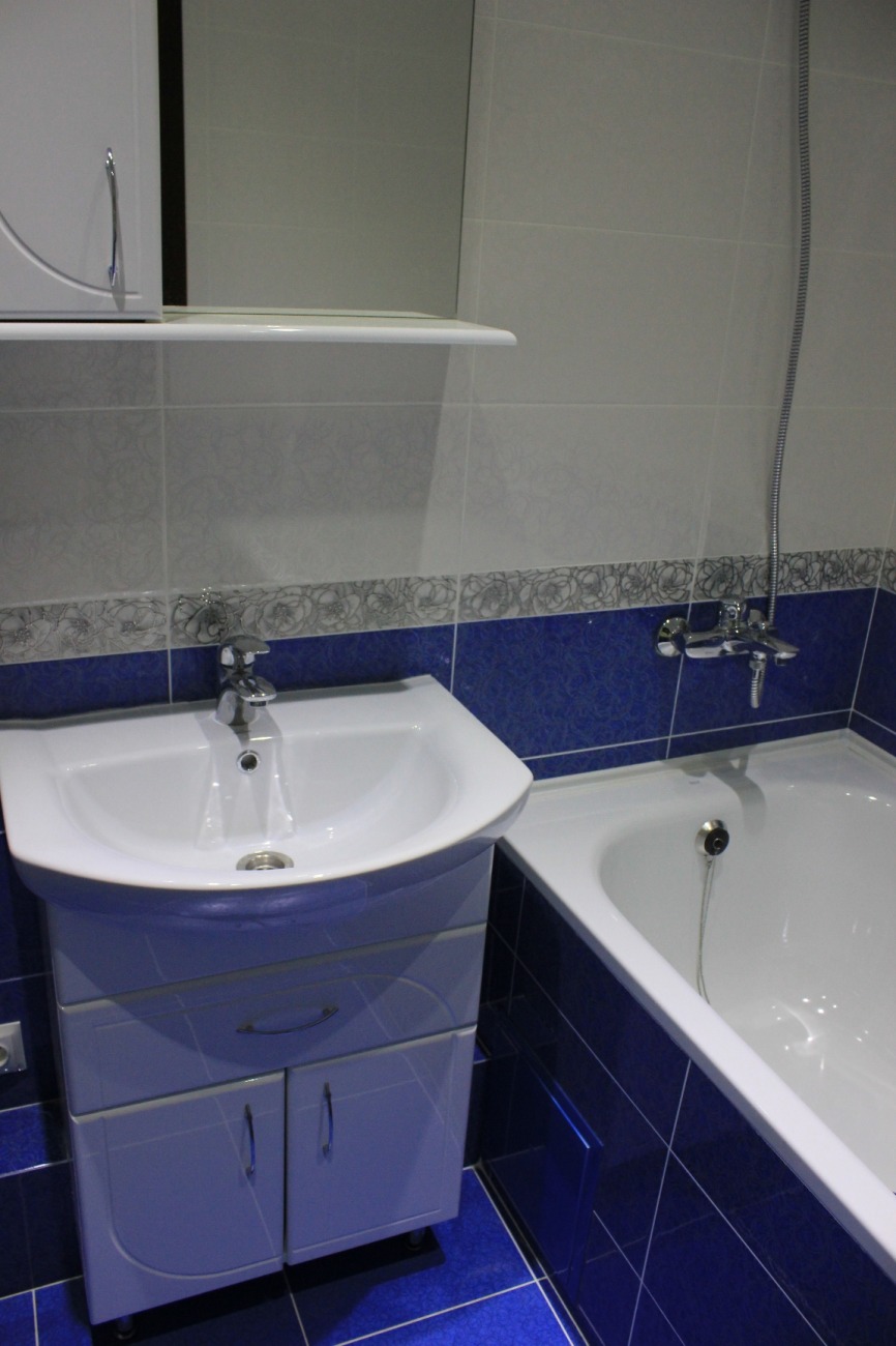 В ходе выполнения косметического ремонта двухкомнатной квартиры на улице Климашкина мастера полностью обновили поверхности во всех помещениях, установили подвесные потолки, постелили напольные покрытия, поклеили обои в жилых комнатах, покрасили стены в прихожей и оформили фартук на кухне. Также мы отделали балкон панелями с имитацией среза натуральной древесины, а в ванной комнате и туалете установили новую сантехнику: унитаз, ванну, мойдодыр и полотенцесушитель. Цвет отделки раздельного санузла: белый и темно-синий.