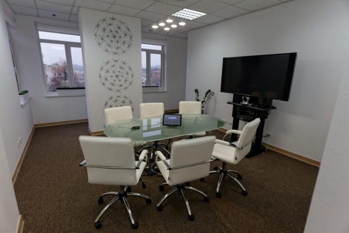Наша компания выполнила косметический ремонт офиса на Бауманской улице. Поверхность пола мы выровняли за счет укладки наливного пола. Также мастера смонтировали двухуровневый потолок Армстронг, заменили входную и межкомнатные двери, уложили на пол устойчивый к истиранию ковролин.